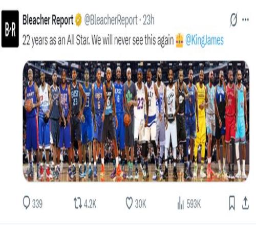 美媒BR寫道:連續22年入選全明星,這樣的球員以后不會再有了。