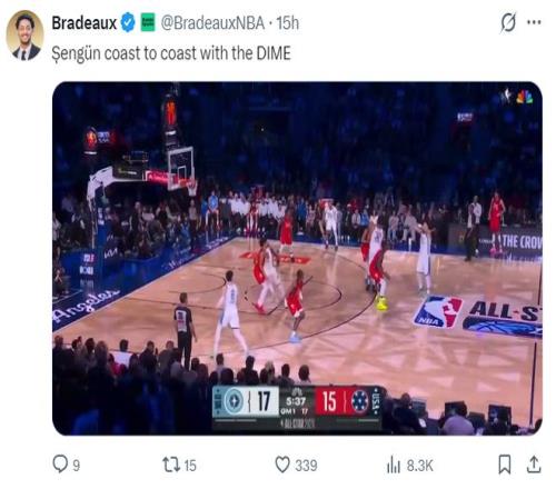 北京時(shí)間2月16日,NBA全明星正賽完結(jié),美國(guó)星隊(duì)在決賽47-21吊打美國(guó)條紋隊(duì)奪冠,世界隊(duì)遭遇二連敗提前出局,換言之火箭全明星中鋒阿爾佩倫-申京只打了兩場(chǎng)比賽就打卡下班。