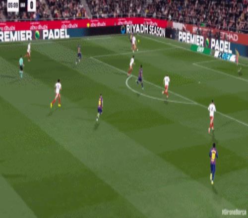第34分鐘,拉菲尼亞直塞,費(fèi)爾明小角度打門(mén)踢飛