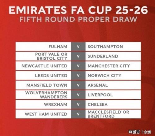 足總杯第五輪抽簽儀式結束,曼城對陣紐卡斯爾,阿森納面對低級別球隊曼斯菲爾德,利物浦VS狼隊,切爾西面對雷克瑟姆,富勒姆對陣南安普頓,利茲聯對陣諾維奇,等等。