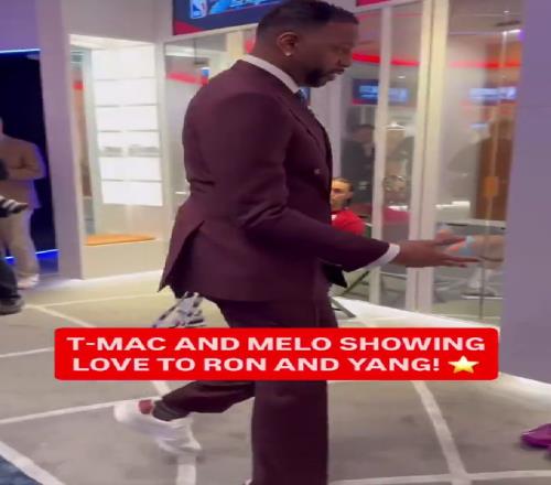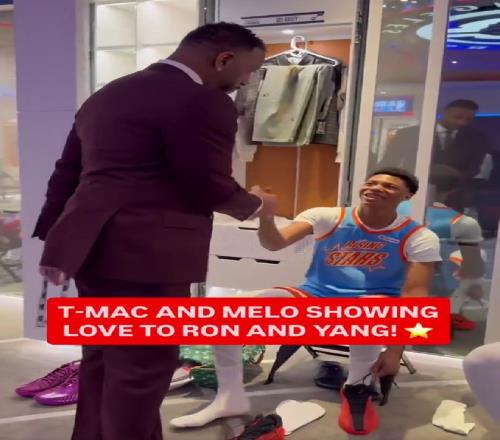 在比賽之前,麥迪、安東尼等NBA傳奇球星來到了新秀更衣室,和聯盟最炙手可熱的新人們打招呼,一身酒紅西裝的麥迪也主動來到了更衣室,和楊瀚森打招呼。