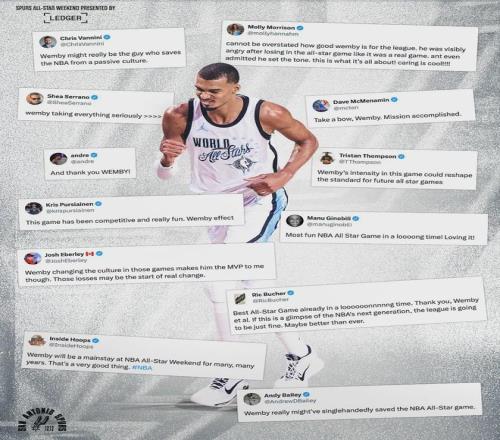 NBA專欄作者Jared Weiss寫道:“文班亞馬曾誓言,要讓全明星正賽重回昔日榮光。今年,他向籃球世界兌現了自己的承諾。這場比賽的表現,進一步鞏固了文班亞馬作為NBA下一位門面的地位。”文班打了兩節,13投10中砍下33分8籃板3蓋帽。