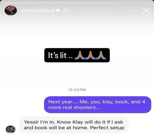 目前這件事已經(jīng)得到了利拉德確認(rèn),利拉德在個人社交媒體上曬出了他與庫里的聊天記錄,具體如下:
