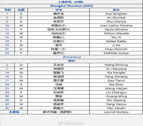 北京時間2月17日20:15,亞冠精英聯賽階段第8輪,上海申花客戰武里南聯。賽前首發公布。