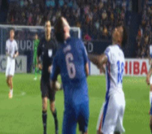 第81分鐘,劉誠宇拼搶時(shí)肘擊提拉通,提拉通鼻子被打破,隨即被替換離場。