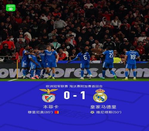 北京時間2月18日歐洲冠軍聯賽 淘汰賽附加賽首回合,本菲卡對陣皇家馬德里。上半場,兩隊均無建樹。下半場,維尼修斯轟入世界波。不過進球后他和對手產生口角,隨后投訴自己遭遇種族歧視,比賽一度中斷。比賽恢復后,穆里尼奧不滿主裁判罰被紅牌罰下。全場比賽結束,皇馬1-0擊敗本菲卡。