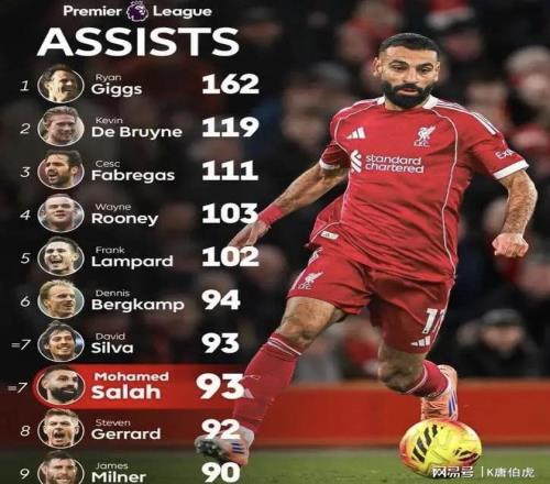 在最近6場的比賽中,薩拉赫只打進了2個進球,但卻貢獻了4次助攻,不得不說他正在積極轉變自己在場上的角色定位,既然無法再繼續承載那個絕對爆點,那么后撤位置成為組織者也未嘗不可。據統計,薩拉赫目前已經完成了93次助攻,這也讓他排在了英超歷史助攻榜單的第7名,甚至是比利物浦傳奇隊長杰拉德還要多1次助攻。