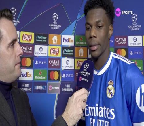 歐冠淘汰賽附加賽首回合,皇馬客場1-0戰勝本菲卡,皇馬中場楚阿梅尼賽后接受了TNT體育墨西哥頻道的采訪。