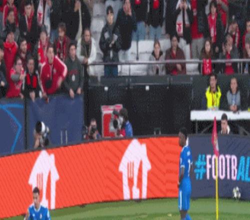 進入補時階段,雙方球員依舊拼搶激烈,場邊球迷也不閑著,本菲卡球迷向維尼修斯投擲水瓶和電子煙等各類雜物!