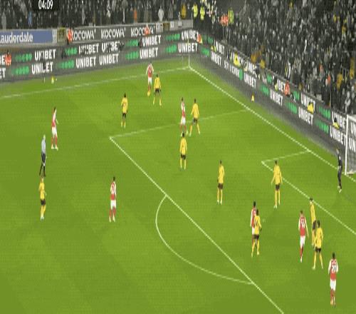 開場只有5分鐘,賴斯送出45度傳中,薩卡頭球破門,槍手取得夢幻開局。