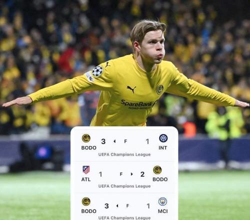 1月20日的歐冠,博德閃耀3-1擊敗曼城,收獲隊史歐冠正賽第1勝;客場2-1戰勝馬競,收獲隊史歐冠首個客場勝利、首個2連勝;3-1擊敗國米,繼續刷新隊史歐冠連勝紀錄。短短29天,博德閃耀接連斬落曼城、馬競、國米3大豪門,可謂震撼。