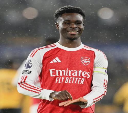 薩卡進球后的慶祝動作暗示他已經和阿森納簽字續約。
