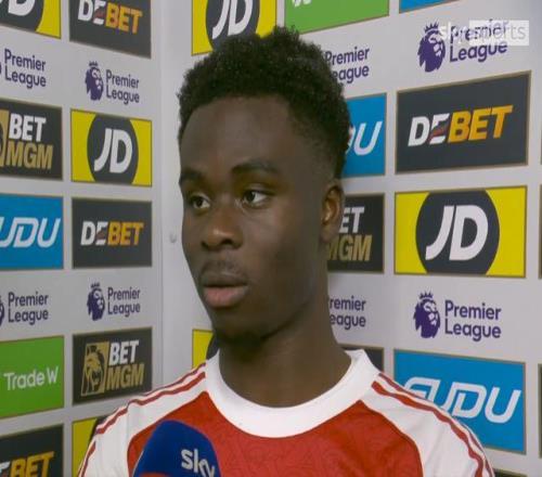 英超第31輪,阿森納在客場2-2戰(zhàn)平狼隊。賽后,阿森納前鋒薩卡接受了天空體育的采訪。