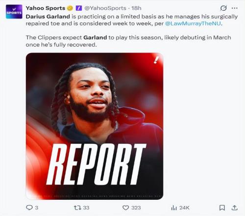 加蘭是在2025年6月10日接受的大腳趾修復(fù)手術(shù),當(dāng)時(shí)預(yù)計(jì)他的康復(fù)時(shí)間是4-5個(gè)月,他在2025年11月6日迎來復(fù)出,但1月15日后腳趾再度撕裂進(jìn)入漫長(zhǎng)的恢復(fù)期,本賽季僅僅打了26場(chǎng)比賽。