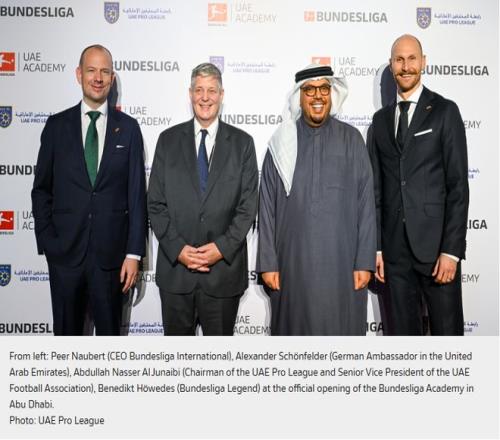 其一,官方背書(shū)的戰(zhàn)略級(jí)聯(lián)動(dòng),讓青訓(xùn)擁有資源支撐與職業(yè)銜接。此次德甲與阿聯(lián)酋的合作,并非德甲單方面的民間輸出,也非阿聯(lián)酋的零散引進(jìn),而是兩國(guó)職業(yè)聯(lián)賽的官方簽約,且有德國(guó)總理與阿聯(lián)酋總統(tǒng)的共同見(jiàn)證,阿聯(lián)酋職業(yè)聯(lián)賽、德甲國(guó)際、當(dāng)?shù)睾献骰锇榄h(huán)球體育目標(biāo)公司三方協(xié)同,青訓(xùn)學(xué)院的培養(yǎng)目標(biāo)明確指向?yàn)榘⒙?lián)酋職業(yè)聯(lián)賽輸送本土人才,球員的成長(zhǎng)路徑直接與職業(yè)聯(lián)賽接軌,從青訓(xùn)到職業(yè)賽場(chǎng)形成了清晰的上升通道。同時(shí),德甲還為阿聯(lián)酋配套了教練員培訓(xùn)、賽事運(yùn)營(yíng)經(jīng)驗(yàn)共享等內(nèi)容,讓青訓(xùn)不只是“練球員”,更是打造本土化的足球?qū)I(yè)人才體系。