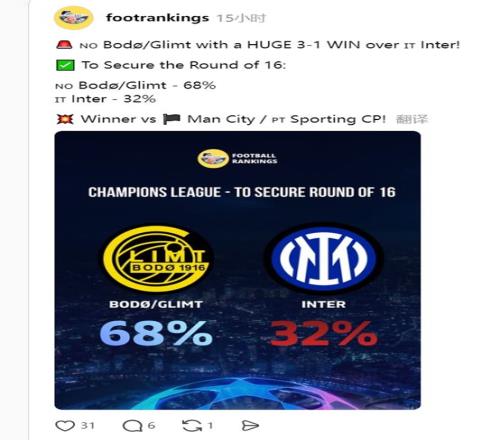 綜上,博德閃耀可能不是一支綜合實力超群的強隊,但具有在一場比賽在爆種擊潰頂級強隊的神經質特性。如果曼城都可以戰勝,以同樣的比分再勝國米又算得了什么?