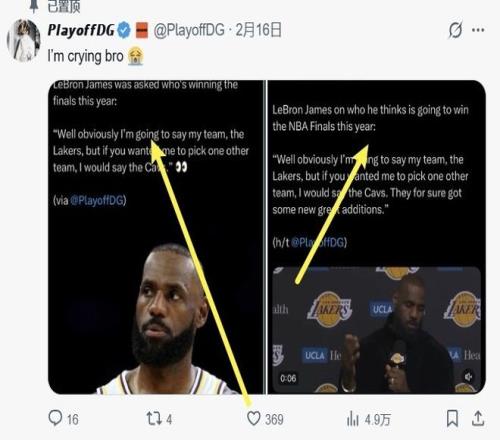 2月20日。有簡介是加蘭和騎士球迷、賬號(hào)背景是加蘭穿騎士球衣合成圖、網(wǎng)名PlayoffDG的用戶在社媒平臺(tái)X上發(fā)動(dòng)態(tài),炫耀他用AI做出歷史第一人詹姆斯在接受采訪時(shí)支持騎士奪冠的虛擬視頻戲耍媒體。而他的報(bào)道也被一些國內(nèi)體育網(wǎng)站轉(zhuǎn)載,引發(fā)了詹黑集體狂歡,但后者再次遭到打臉。