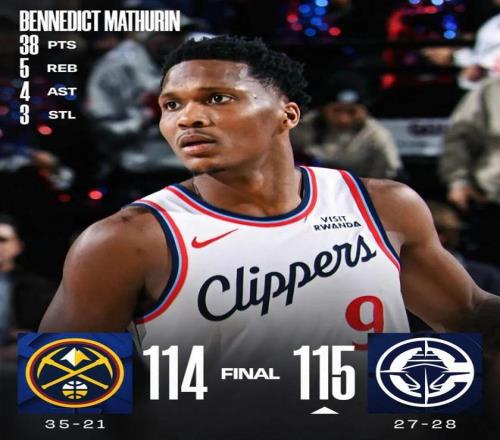 常規賽,快船115-114戰勝掘金。