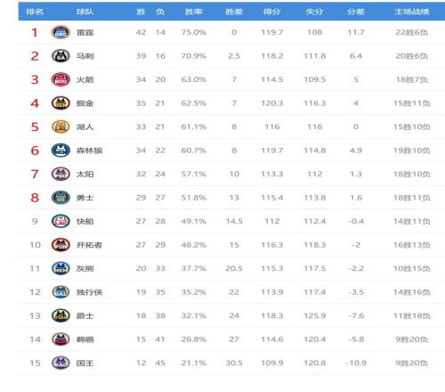 今日比賽后火箭、掘金排名互換,其他西部球隊排名不變。