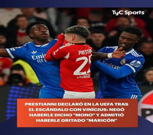 TyC在報道中稱,普雷斯蒂安尼向歐足聯(lián)表示,在維尼修斯進球后,他沒有沖對方喊“猴子”,不存在種族歧視行為。但他承認(rèn),自己曾對著維尼修斯喊“基佬”。TyC還表示,普雷斯蒂安尼預(yù)計可以參加與皇馬的次回合比賽。