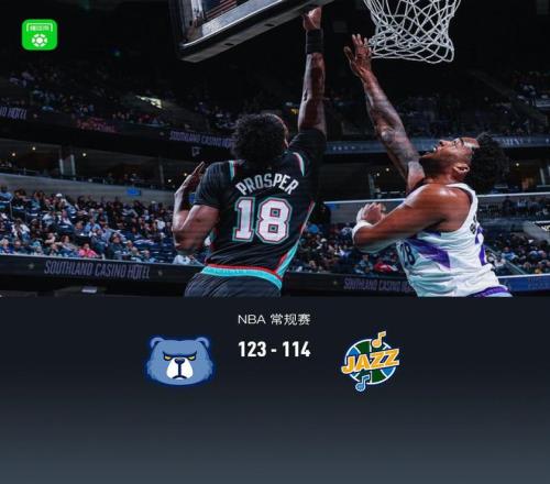 第四節灰熊GG-杰克遜拿下9分,爵士科利爾拿下10分,最終灰熊123-114戰勝爵士
