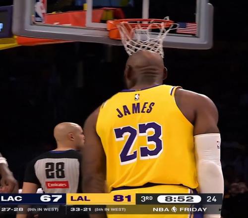 末節,詹姆斯打了6分鐘左右被換下休息,他兩次助攻斯瑪特的底角中遠投非常關鍵,詹姆斯也完成兩雙了。終場前8秒湖人領先3分手握球權,但詹姆斯傳球被巴圖姆搶斷,好在巴圖姆絕平三分不中,湖人涉險過關。