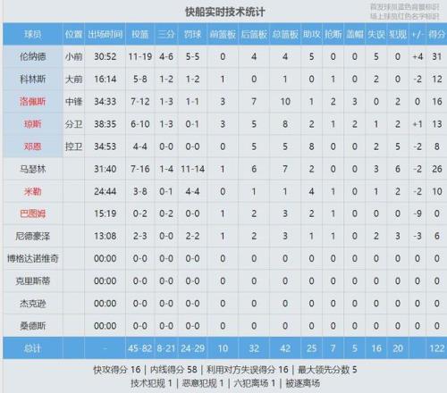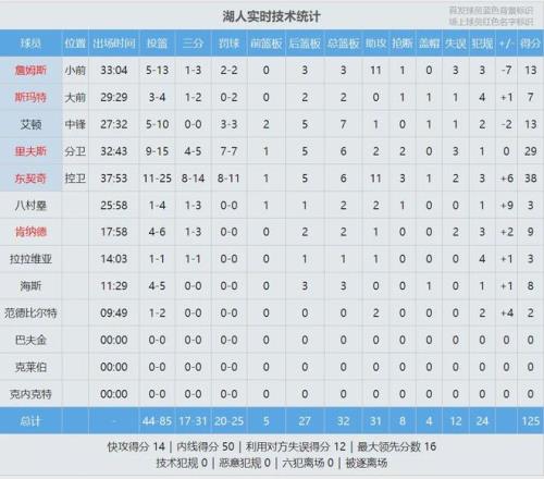 全場結束,湖人125-122險勝快船。東契奇38分6板11助3斷、里夫斯29分6板2助2斷,詹姆斯和艾頓各得13分。倫納德31分4板5助、馬瑟林26分7板2助。泰倫盧賽后不滿判罰:“湖人球員很優秀了,還要騙犯規!這種吹罰真的很難!”