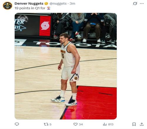 對陣快船的比賽約基奇的進攻欲望非常差,全場比賽22中9+三分6中0+6失誤,才拿22分。但這場對陣開拓者他的戰意非常濃,首節12分鐘里12中7,三分4中3,罰球4中2,拿到19分2籃板1助攻2搶斷,約基奇這個狀態就是想贏球。