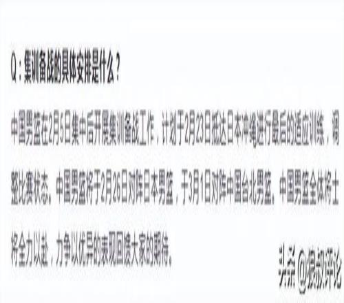 根據(jù)此前中國籃協(xié)官方社媒公示,中國男籃在國家體育總局的集訓(xùn)時間為2月5日至2月23日,也就是說距離出發(fā)遠征日本客場,僅僅剩下2天時間。