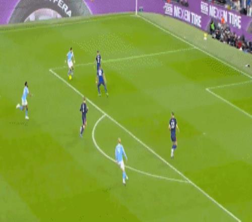 第37分鐘,曼城球員B席中路挑傳,馬爾穆什殺入禁區低平球傳中,奧賴利飛身鏟射打偏,錯失帽子戲法!