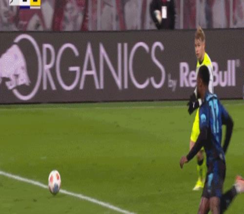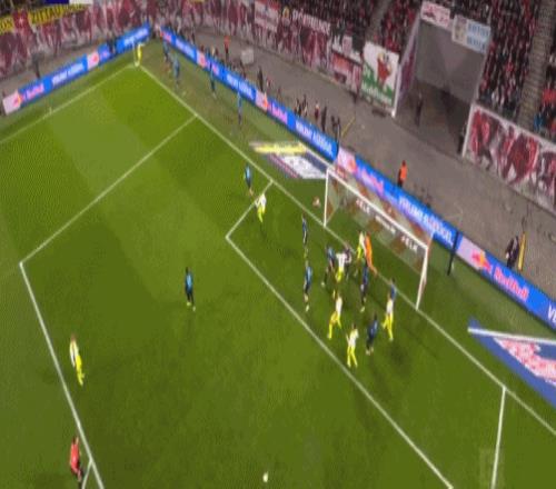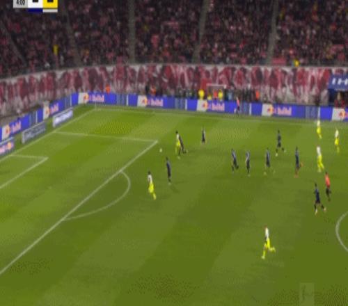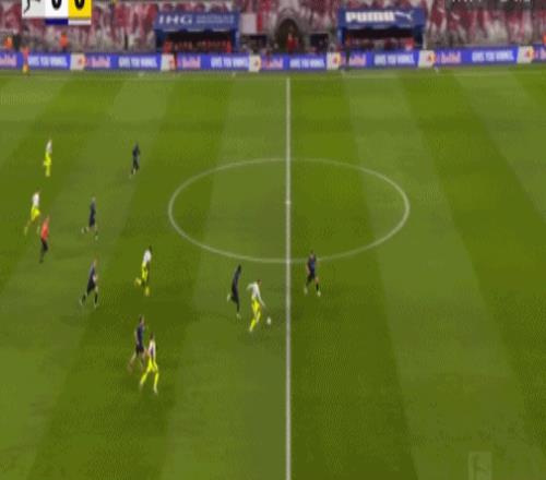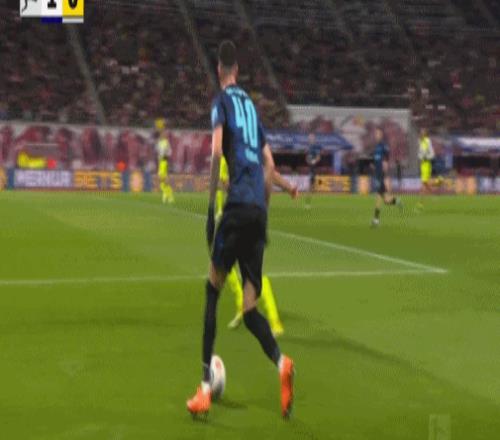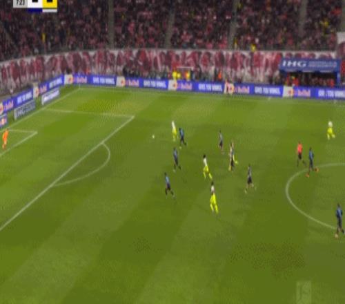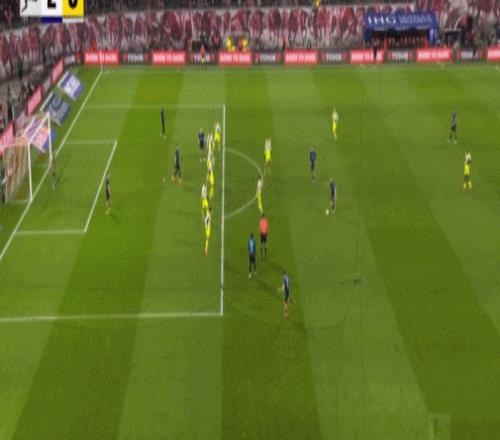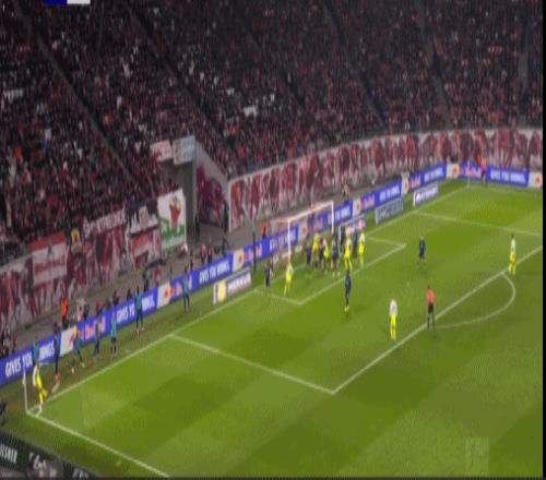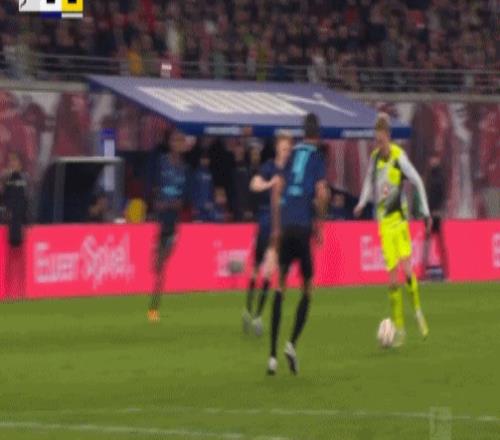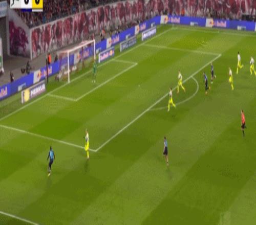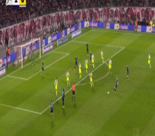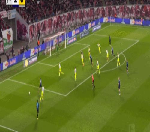 第20分鐘,迪奧曼德晃動送助攻,鮑姆加特納破門,萊比錫1-0多特