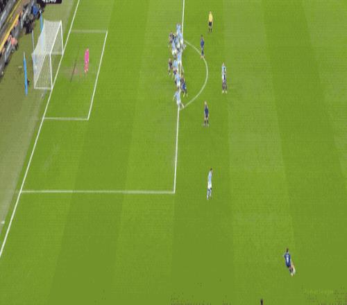 第26分鐘,塞梅尼奧策動進攻,哈蘭德游走到了邊路,化身多庫下底傳中,奧萊利頭球破門。