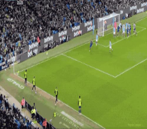 直到第14分鐘,場上才出現了第一次的射門,曼城發動進攻,哈蘭德巧妙傳球,馬爾穆什快速帶球送出助攻,奧萊利打破僵局。
