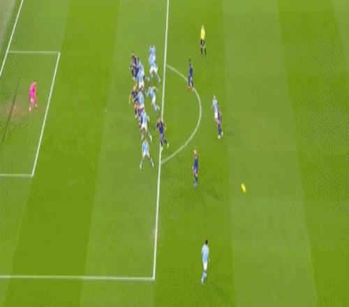 第27分鐘,塞門約右路直傳,哈蘭德插上底線附近傳中,奧賴利后點包抄頭球吊射得手,上演梅開二度好戲,曼城迅速奪回領先優勢,2-1!