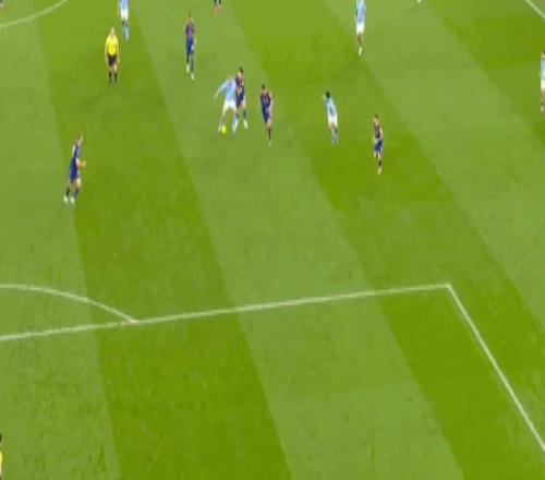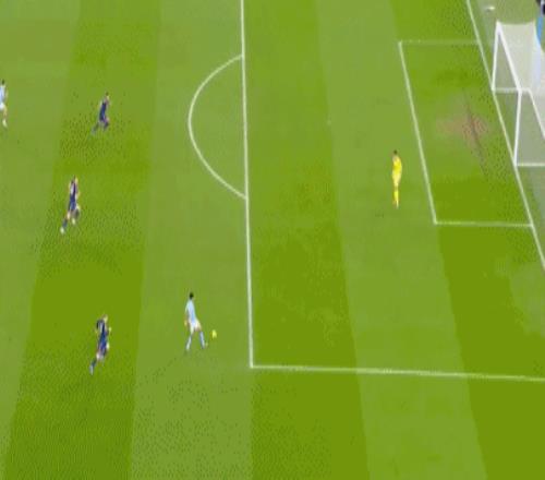 第79分鐘,福登又送出妙傳,艾特-努里左路插上形成單刀,但臨門一腳卻雙腿發軟踉蹌倒地,波普出擊將球沒收。