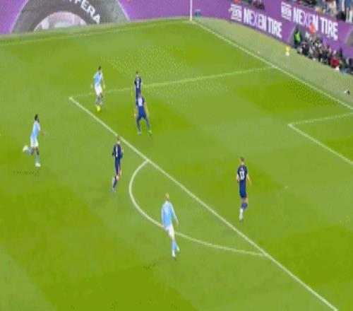 第45分鐘,佳夫和托納利配合失誤,哈蘭德斷球之后強行推進,禁區外起腳勁射,擦著立柱稍稍偏出。