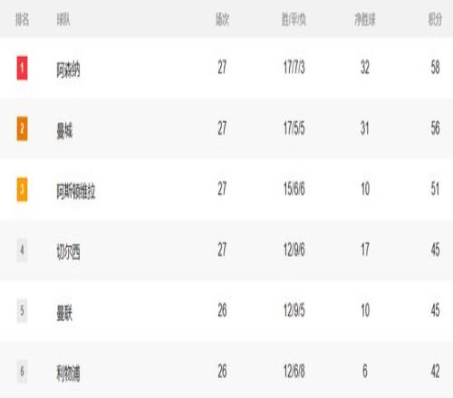 這場2:1的比賽過后,英超積分榜的形勢發生了非常大的變化。阿森納雖然仍然占據英超榜首的位置,但曼城憑借這場2:1的勝利,積分已經提升到56分,與阿森納的積分差縮小到了2分。阿斯頓維拉本輪1-1戰平利茲聯,積分停留在51分,位居第三位,與前兩名的差距逐漸拉大,爭冠希望愈發渺茫。切爾西1-1被伯恩利絕平后積45分,曼聯同積45分,兩隊分列第四、五位,只能專注于歐冠資格的爭奪,已基本退出爭冠行列。至于積42分排名第六的紅軍利物浦,就更加徹底退出英超爭冠行列了。