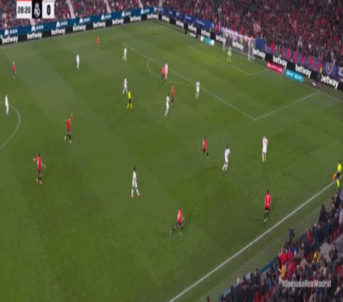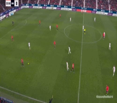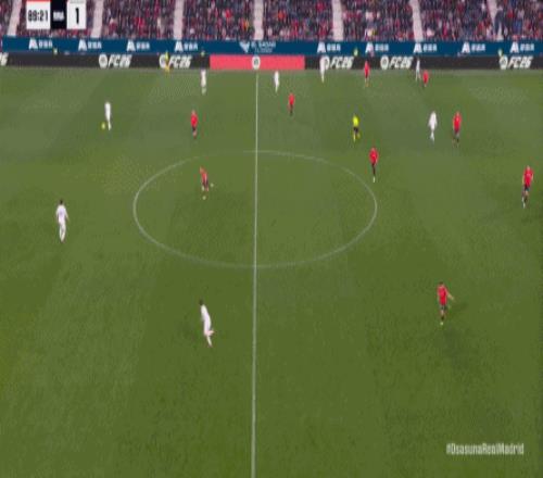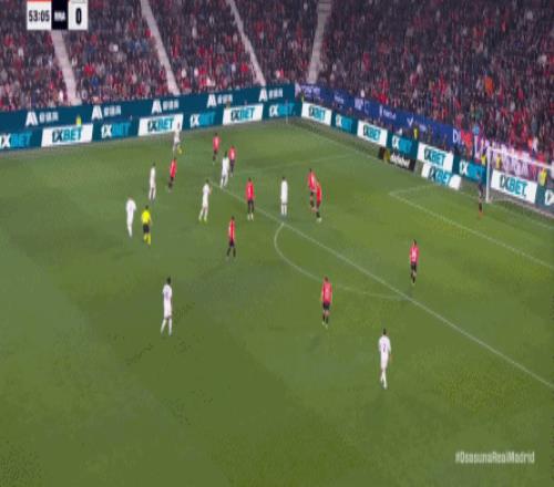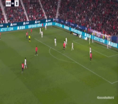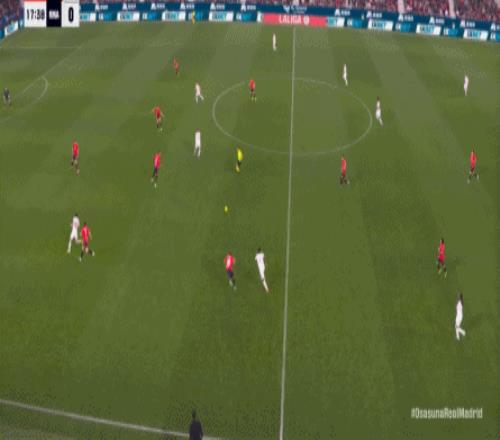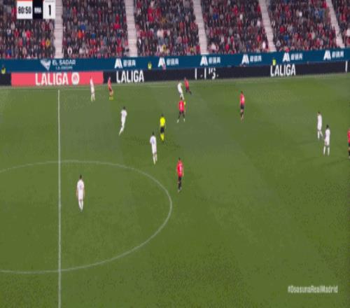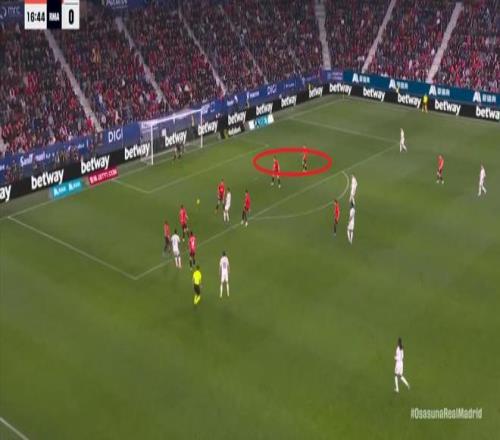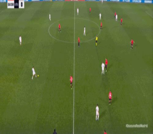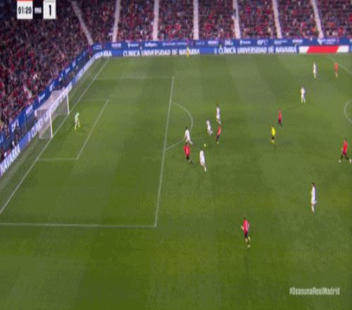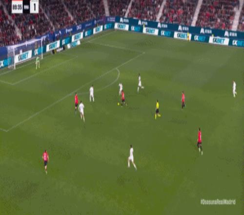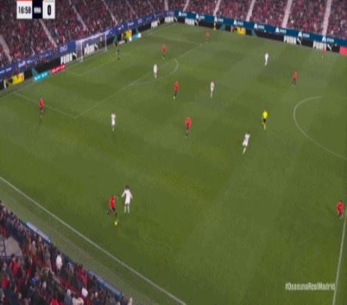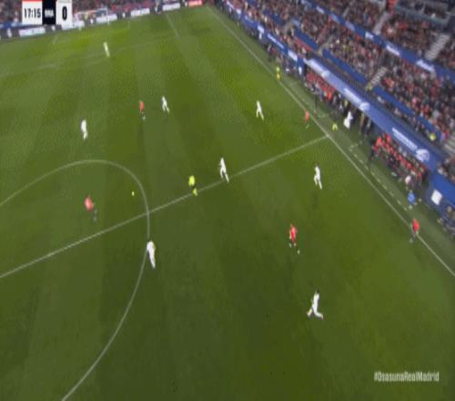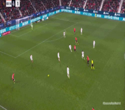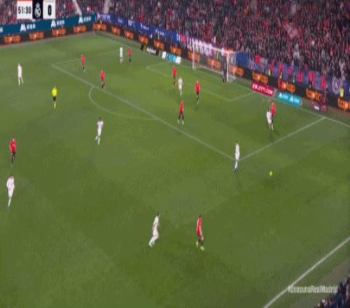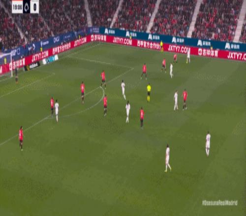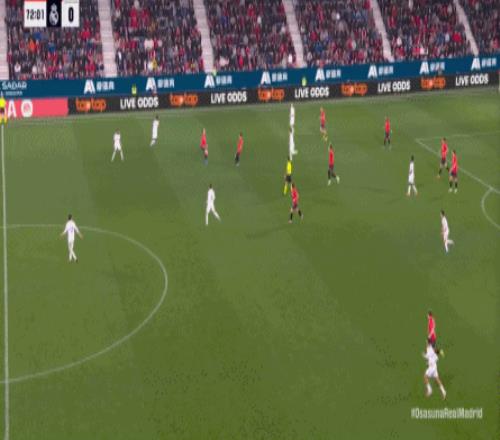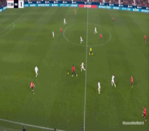 第78分鐘,皇馬在高位人盯人的時候出現問題,讓奧薩蘇納打到了前場,而且再次打出了傳中進攻的威脅: