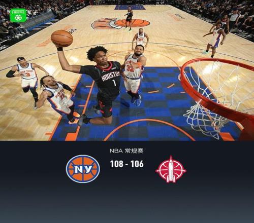 第四節尼克斯布倫森拿下8分,火箭杜蘭特拿下5分,最終尼克斯108-106戰勝火箭