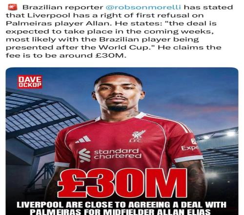 相信大家都刷到了所謂利物浦與帕爾梅拉斯邊鋒阿蘭的緋聞,這種巴西境內孤立源,我不能說完全不可能,但參考過去巴西/拉美/日本的孤例:帕托、久保健英以及維爾塔(聲稱自己差點被利物浦簽下),大家可以自行判斷。