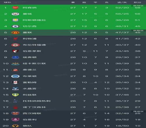 英超最新積分榜