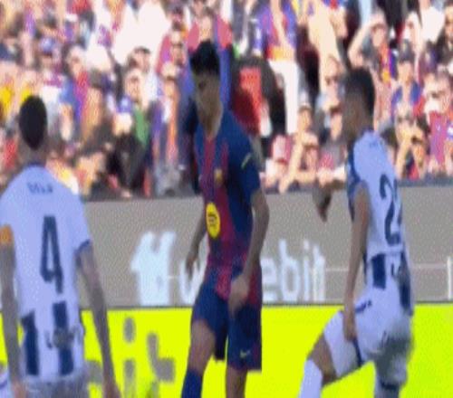 第4分鐘,拉菲尼亞開出戰術角球,亞馬爾橫傳中路,坎塞洛擺脫后外腳背妙傳,埃里克-加西亞左路橫敲,貝爾納爾鏟射命中,巴薩打破僵局,1-0!