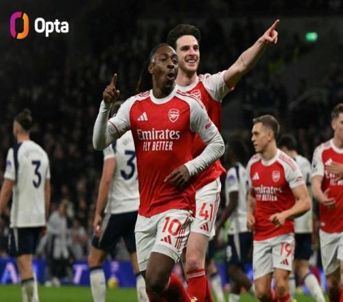 2場5球,埃澤英超北倫敦德比進球追平亨利和范佩西并列隊史第3 懂球帝 2026-02-23 04:07:36 北京時間2月23日,在英超第27輪的北倫敦德比中,埃澤上下半時分別進球,幫助阿森納在第61分鐘過后客場3-1領先于托特納姆熱刺。根據Opta的統計,去年夏天才加盟阿森納的埃澤在自己代表槍手出戰的兩場英超的北倫敦德比中已經打進5球,他也就此追平了亨利和范佩西,并列成為槍手隊史在英超北倫敦德比中的第三射手,僅次于打進7球的皮雷和打進6球的阿德巴約。【上咪咕獨家看英超】英超免費觀看_埃澤免費觀看_阿森納免費觀看_英超高清在線_埃澤高清在線_阿森納高清在線 英超 埃澤 阿森納 熱刺隊 北倫敦德比 羅賓·范佩西 蒂埃里·亨利 上一篇: 范德芬:我們知道自己現在的排名,但最重要的是我們要往上看 下一篇: 英超領頭羊狂轟4球,神鋒梅開二度,阿森納61分領跑,甩開曼城5分