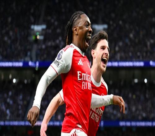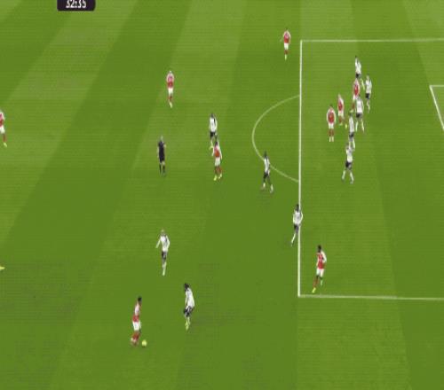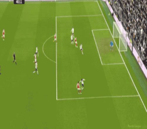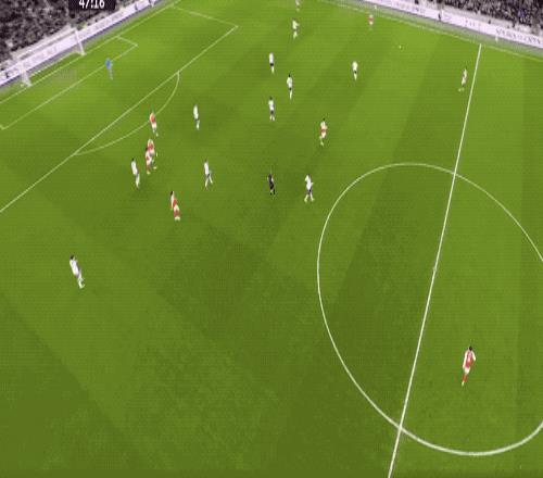 第61分鐘,熱刺防線一片混亂,薩卡的單刀射門被擋出,皮球來到埃澤的腳下,埃澤梅開二度,兩回合對陣熱刺打進5球,效率極高。