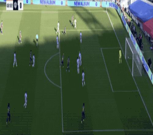 第27分鐘,坎塞洛傳中,萊萬甩頭攻門擊中立柱,客隊逃過一劫。