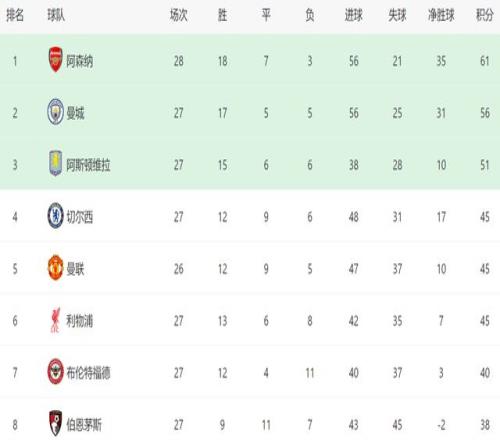 值得一提的是,要是阿森納能戰勝切爾西,也將影響爭四的格局。在積分榜上,切爾西、曼聯和利物浦同積45分,3隊爭四已經進入白熱化階段,其中曼聯少賽1場,接下來他們將做客對陣埃弗頓,如果保持不敗,曼聯就將回到前四。