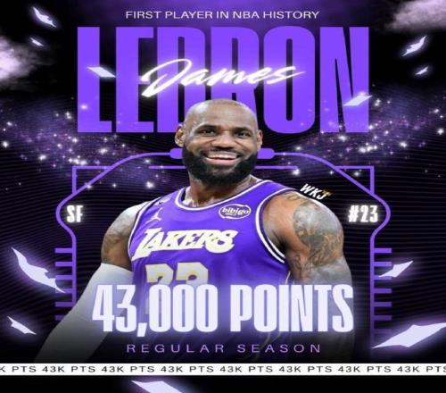 詹姆斯達(dá)成NBA生涯常規(guī)賽43000分里程碑,創(chuàng)造歷史第一紀(jì)錄。
