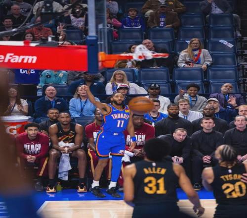 北京時間2月23日,今天早上結束的兩場常規賽:騎士客場113-121不敵雷霆,7連勝被終結;勇士主場128-117逆轉掘金。先說第一場,亞歷山大、杰倫-威廉姆斯和卡魯索等人休戰,雷霆二隊出戰,但他們三分命中率超過五成!
