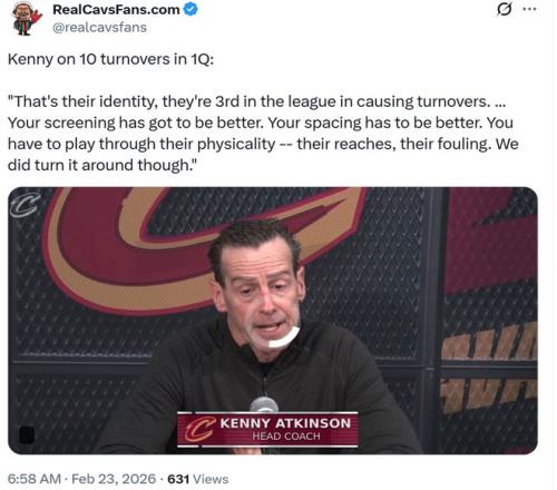 最后則是失誤問題,騎士隊首節(jié)之所以早早陷入20分以上巨大落后,核心原因是處理球的不謹慎,開局明顯沒有對上雷霆隊的比賽強度,單節(jié)出現(xiàn)多達10次失誤,全場讓對手雷霆利用失誤拿下31分,自己在該項僅拿到12分。