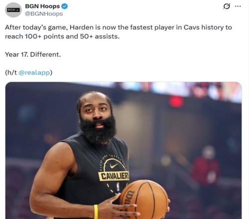 憑借這樣的表現(xiàn),哈登加盟騎士隊短短6場比賽,已經(jīng)拿到至少100分50助,創(chuàng)造隊史最快紀錄,也帶隊拿下5勝1負傲人戰(zhàn)績。